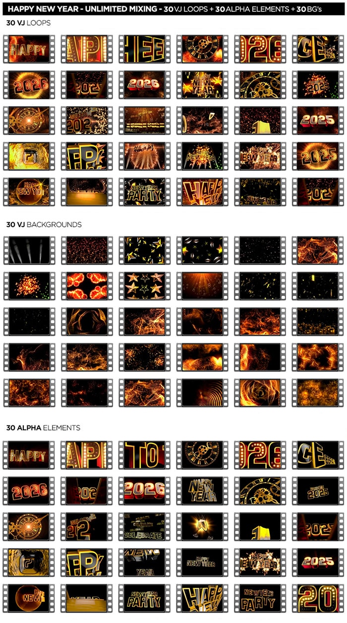 The Happy New Year VJ Loops Pack collection comes packed in four different options: